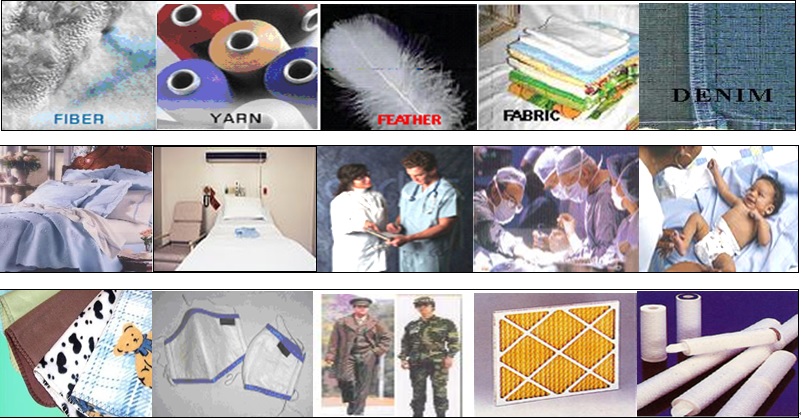 ◎適用各類棉、毛、麻、絲、羽絨、嫘縈、木紙漿等天然纖維含量35%以上的原料、布料及製品。如醫護用紡織品、服飾用紡織品、家飾用紡織品、衛生用紡織品、嬰幼兒用紡織品、空氣濾網、及飲用水過濾器…等等。